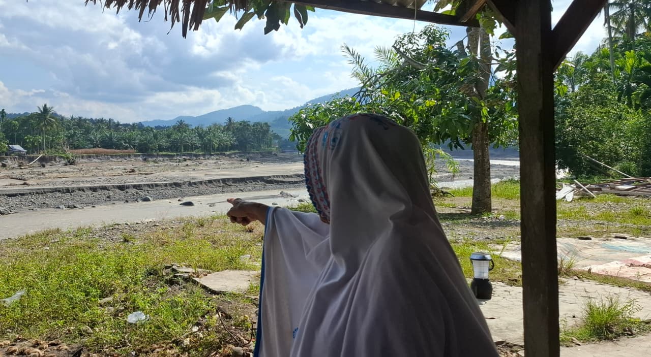 “Saat kejadian malam itu saya dilarikan ke tempat yang lebih aman oleh anak saya, saat itu tidak tahu lagi bagaimana dengan rumah. Keesokan harinya baru melihat tidak ada lagi dan telah menjadi sungai,” ceritanya sambil berulang kali menyampaikan kebutuhan akan hunian sementara.
