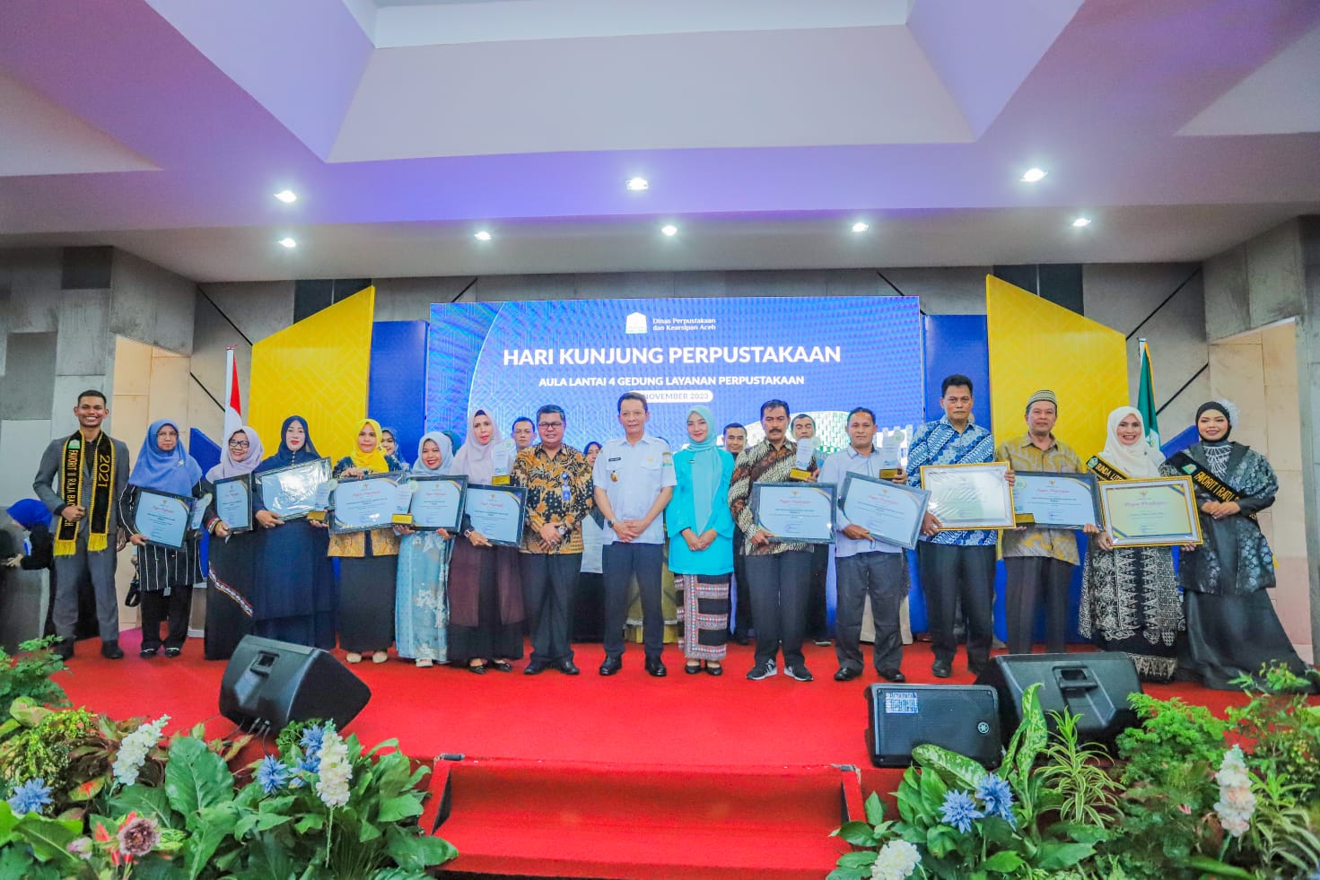 Prosesi penyerahan penghargaan ini dilakukan di Pj Gubernur Aceh Ahcmad Marzuki di Gedung Layanan Lantai 4 Aula Perpustakaan dan Kearsipan Aceh, pada Peringatan Hari Kunjungan Perpustakaan Tahun 2023, Rabu ( 22/11).