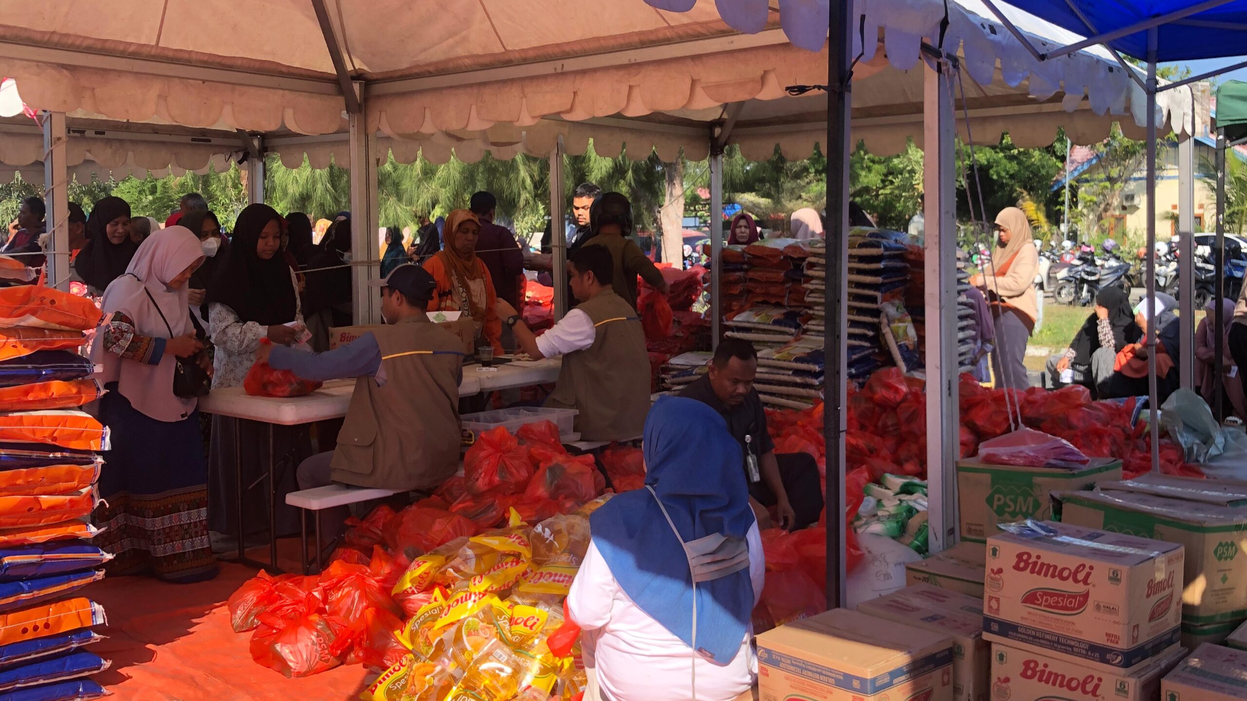 Dalam kegiatan tersebut, masyarakat dapat membeli paket sembako seharga Rp197.000 per paket. Setiap paket berisi beras 10 kilogram Rp105.000, minyak goreng 2 liter Rp35.000, gula pasir 1 kilogram Rp15.000, serta telur ayam satu papan Rp42.000.