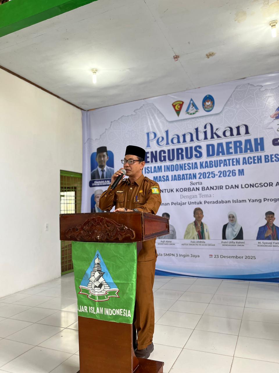 KOTA JANTHO (Waspada.id): Pengurus Daerah Pelajar Islam Indonesia (PD PII) Kabupaten Aceh Besar periode 2025–2026 resmi dilantik oleh Pengurus Wilayah Pelajar Islam Indonesia (PW PII) Aceh di Aula SMP Negeri 3 Ingin Jaya, Aceh Besar, Selasa (23/12).