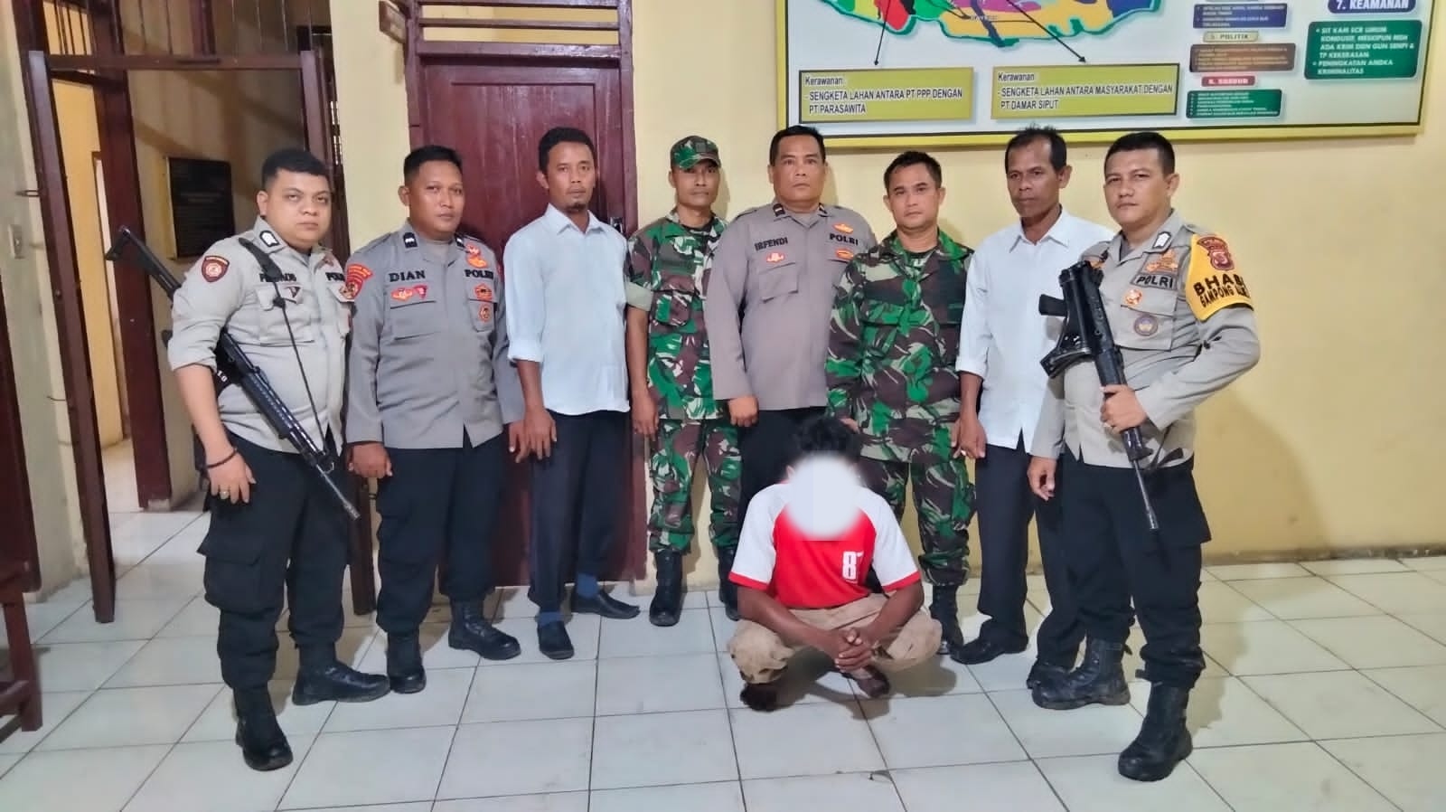 Kemudian, diketahui pelaku bersembunyi di sebuah pondok di areal tambak masyarakat. Mengetahui ini, selanjutnya Danramil 03/Rantau Selamat memerintahkan 4 anggota dibantu anggota Polsek Rantau Selamat bersama masyarakat menuju ke TKP tempat persembunyian pelaku.