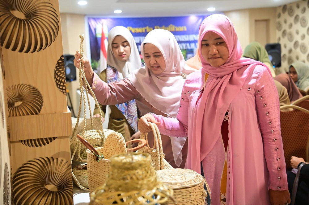 Kegiatan pelatihan itu telah berlangsung sejak tanggal 25 Juli yang lalu. Dalam kegiatan ini, Cut Rezky Handayani menyempatkan diri untuk melihat hasil kerajinan anyaman para peserta pelatihan.