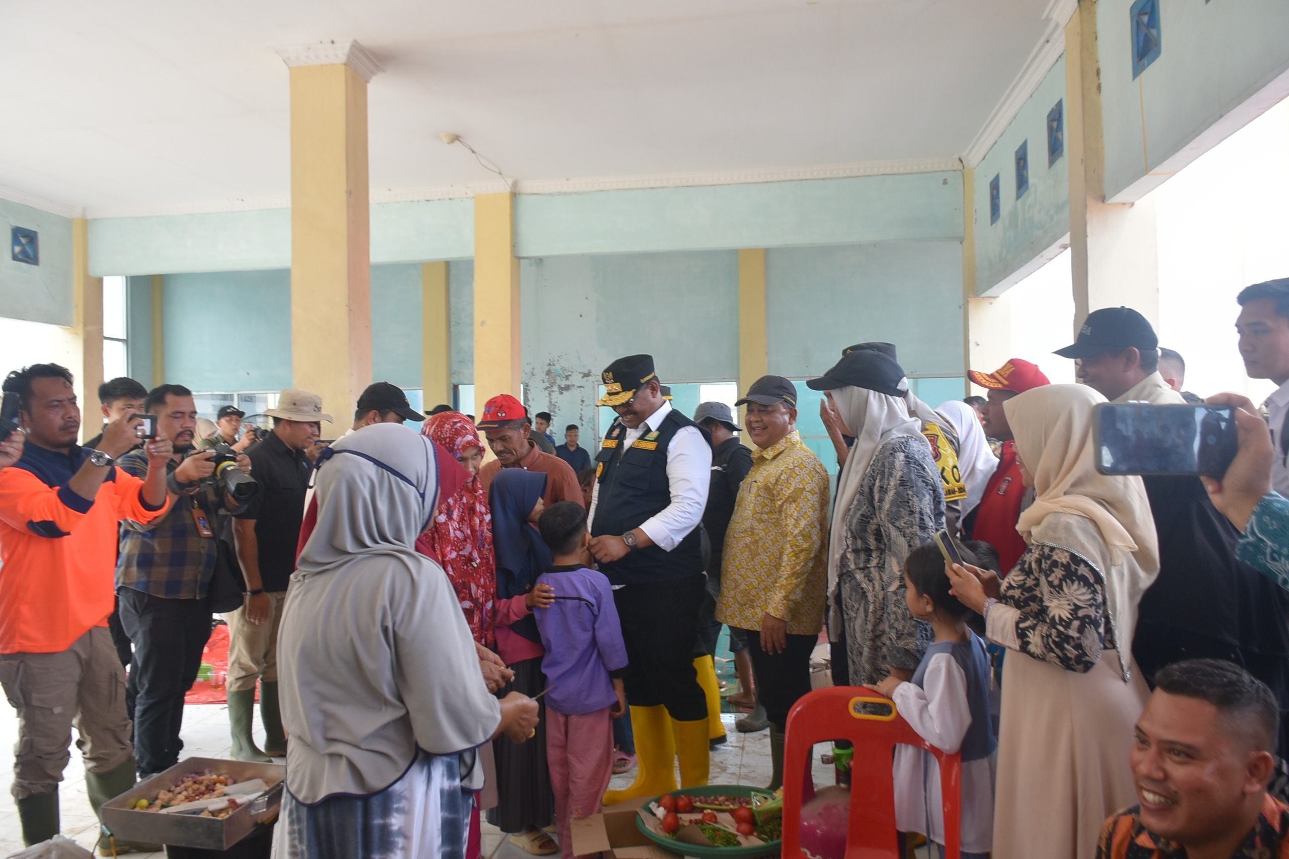 Rombongan Pj Gubernur Aceh, Kapolda dan Pangdam Iskandar Muda selanjutnya mengunjungi Posko Penanggulangan warga terdampak banjir di Seruway.