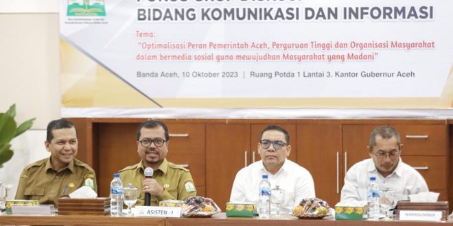 BANDA ACEH (Waspada): Pemerintah Aceh melalui Biro Keistimewaan dan Kesra Sekda Aceh menggelar fokus grup diskusi (FGD) bidang komunikasi informasi untuk aparatur sipil negara (ASN) dan anggota organisasi masyarakat, di Kantor Gubernur Aceh, Selasa, (10/10).