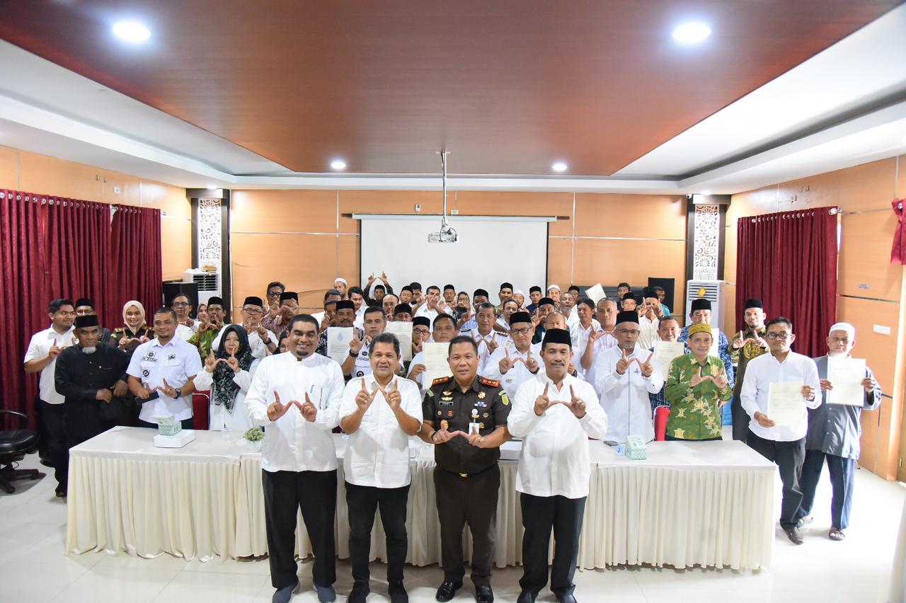 KOTA JANTHO (Waspada.id): Pemerintah Kabupaten (Pemkab) Aceh Besar mengapresiasi langkah Kejaksaan Negeri (Kejari) Aceh Besar dan Badan Pertanahan Nasional (BPN) dalam proses sertifikasi tanah wakaf di wilayah Kabupaten Aceh Besar, di Aula Burhanuddin Lopa, Kejari Aceh Besar, Kota Jantho, Rabu (22/10).