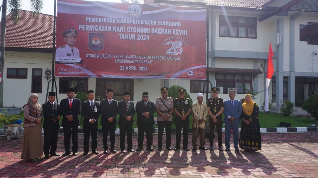 KUTACANE (Waspada): Pemerintah Kabupaten Aceh Tenggara memperingati Hari Otonomi Daerah XXVIII Tahun 2024, dalam satu upacara yang berjalan lancar di halaman Setdakab, Kamis (25/4).
