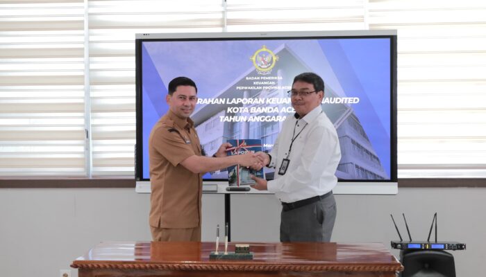 Laporan tersebut diserahkan secara resmi oleh Pj Sekretaris Daerah (Sekda) Kota Banda Aceh, Wahyudi, kepada Kepala Sub Auditorat Aceh I BPK RI Perwakilan Aceh, Triana di Gedung BPK Perwakilan Aceh di kawasan Jalan Panglima Nyak Makam Lampineung Banda Aceh, Senin(04/03/24).