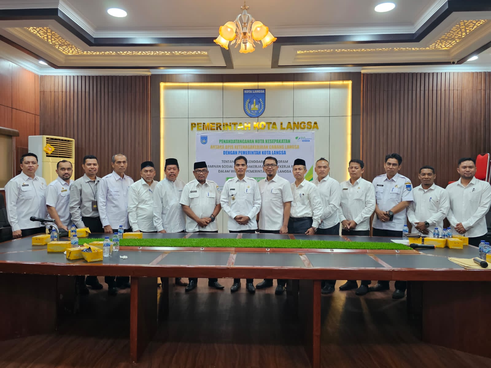 LANGSA (Waspada): Pemerintah Kota (Pemko) Langsa menandatangani nota kesepakatan dengan Badan Penyelenggara Jaminan Sosial (BPJS) Ketenagakerjaan atau BPJamsostek Cabang Langsa terkait penyelenggaraan program jaminan sosial ketenagakerjaan bagi pekerja rentan dalam wilayah Pemko Langsa.