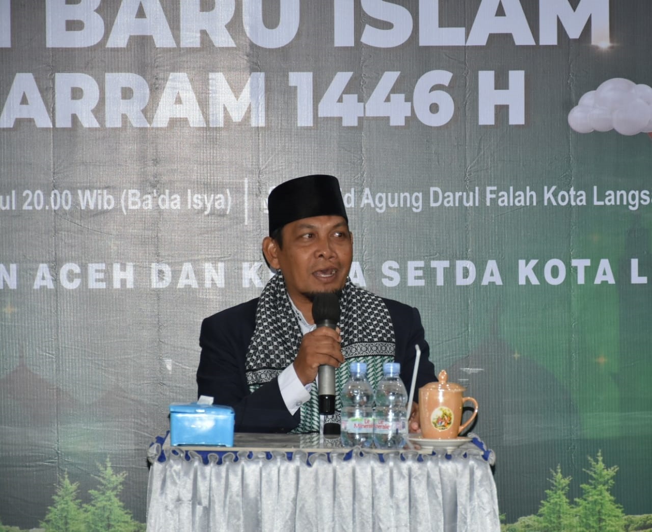 LANGSA (Waspada) : Pemerintah Kota (Pemko) Langsa memperingati Tahun Baru Islam 1 Muharram 1446 H dengan menggelar tausiah akbar, di Masjid Agung Darul Falah Kota Langsa, Minggu (7/7) malam.