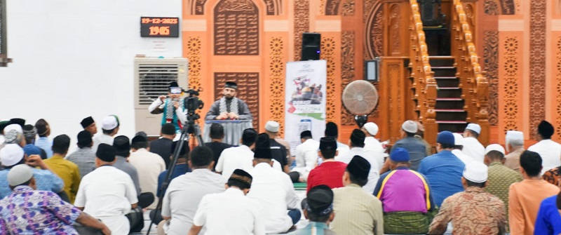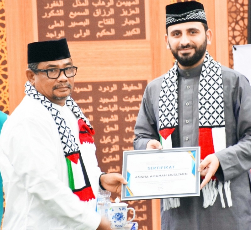 LANGSA (Waspada): Pemerintah Kota (Pemko) Langsa gelar Road Show Empaty for Palestine bersama Imam Besar Al-Khadra, Gaza Palestine Syeikh Saeb Helles di Masjid Darul Fallah Kota Langsa, Selasa (19/12) malam.