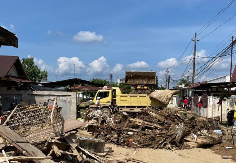 Dalam menangani lumpur dan sampah berbagai tenaga kebersihan serta alat-alat berat Dinas Lingkungan Hidup (DLH) dan Dinas PUPR terus beroperasi di sejumlah titik untuk mempercepat proses pembersihan dan perbaikan.