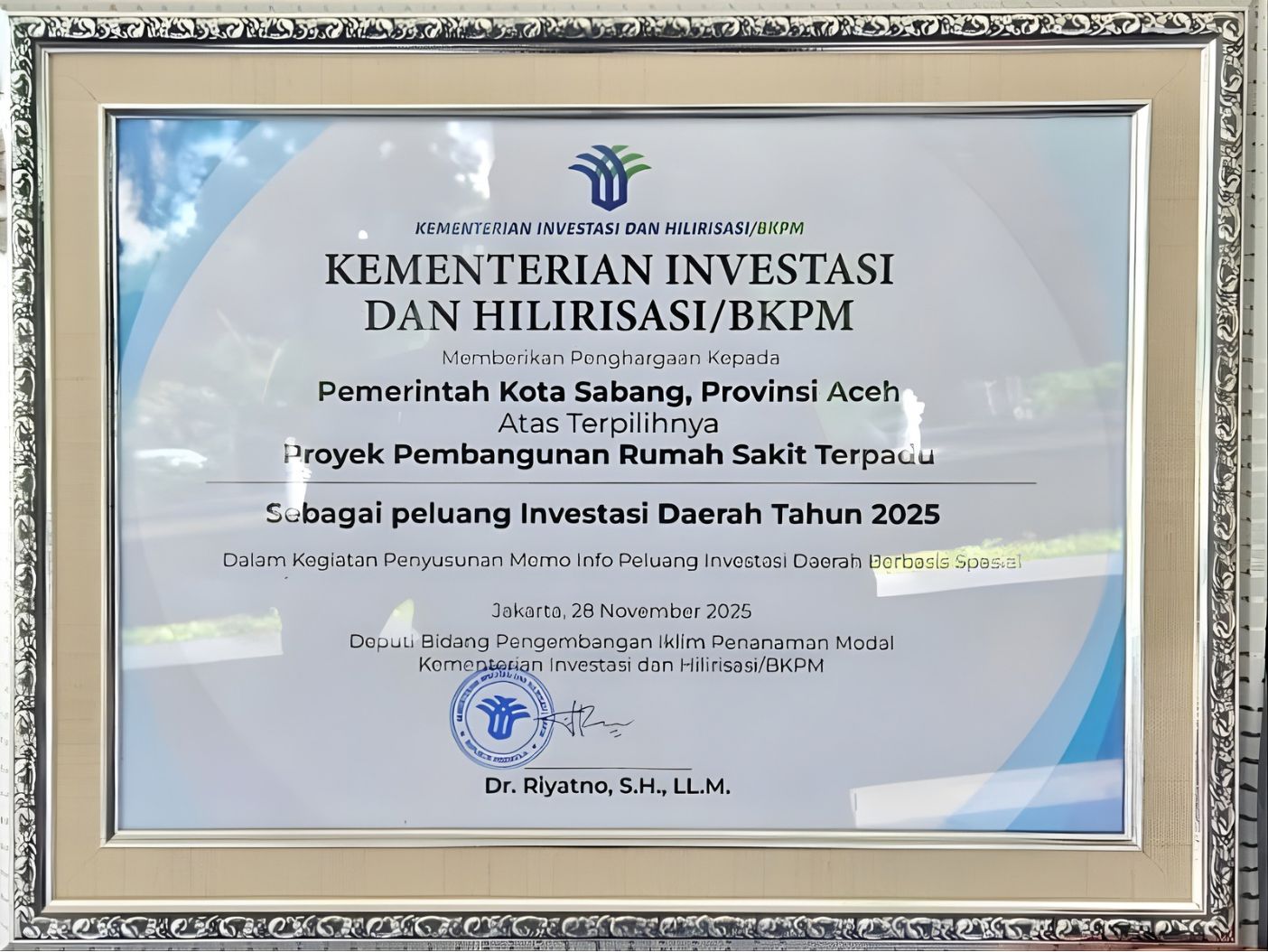 “Pengakuan ini menunjukkan bahwa Sabang punya potensi besar dan siap bergerak lebih cepat. Proyek RS Terpadu adalah langkah nyata untuk menghadirkan layanan kesehatan yang modern bagi warga kami,” ujar Wali Kota Sabang, Jumat (28/11).