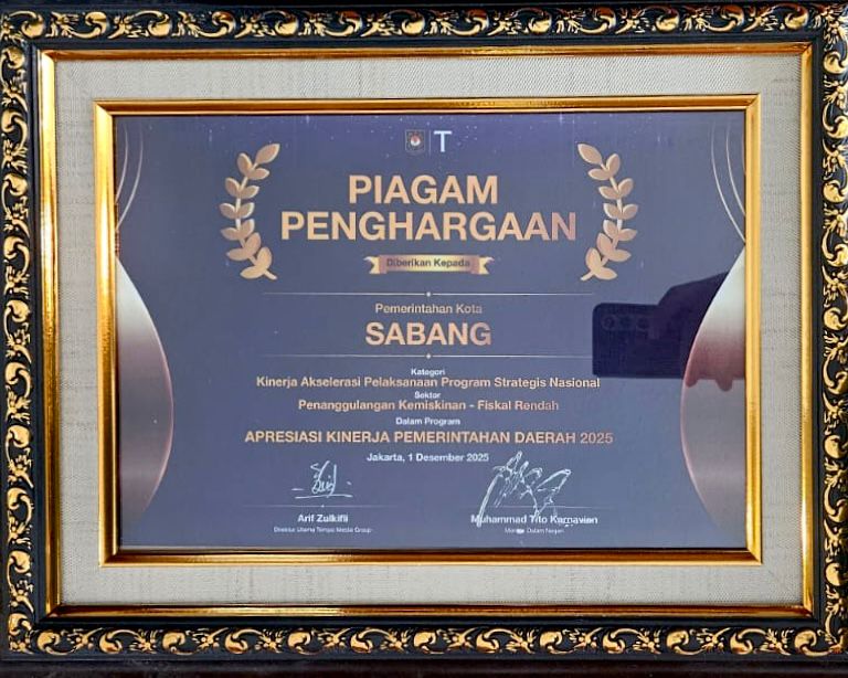 SABANG (Waspada.id): Komitmen dan kerja berkelanjutan Pemerintah Kota Sabang dalam menekan angka kemiskinan mendapat pengakuan nasional. Ini merupakan apresiasi yang diberikan atas keberhasilan pemerintah daerah bersama masyarakat dalam menjalankan program-program pengentasan kemiskinan tahun 2025.