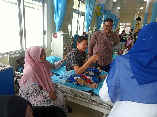 Peringatan Hari Ginjal Sedunia juga diikuti puluhan pasien cuci darah di Ruang Hemodialisa. Dalam kesempatan itu, pasien bersama keluarga mendapat informasi terkait kegiatan cuci darah dari dokter spesialis RSU Cut Mutia Dr. Rahmawati A Latif, Sp.PD KGH.