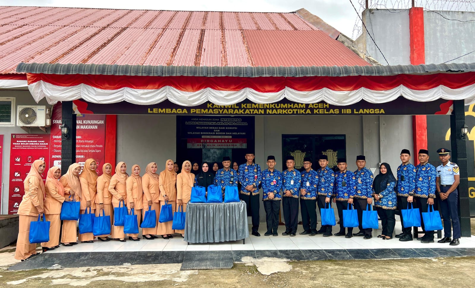 LANGSA (Waspada): Lembaga Pemasyarakatan Narkotika Kelas IIB Langsa bersama Dharma Wanita Persatuan (DWP) kembali menggelar kegiatan sosial menyalurkan bantuan sembako untuk masyarakat sekitar usai melaksanakan upacara peringatan Hari Ibu, Senin (23/12).