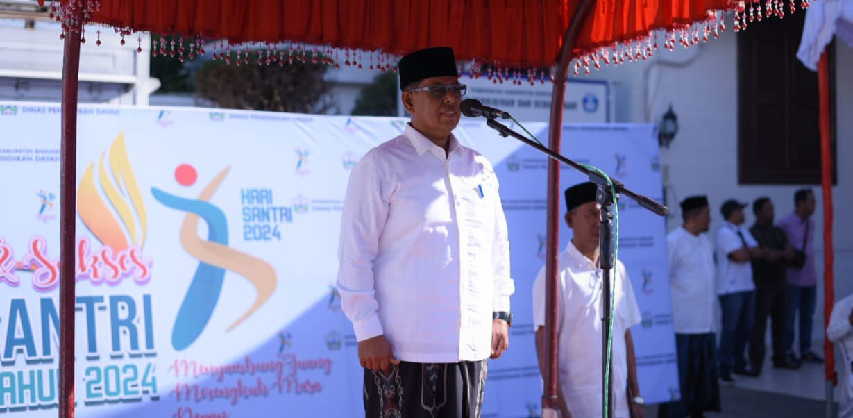 “Oleh karena itu, saya mengajak kepada seluruh komponen bangsa, apa pun latar belakangnya, untuk turut serta merayakan Hari Santri. melalui momen apel Hari Santri 2024 ini marilah sejenak kita doakan pahlawan-pahlawan kita, ulama-ulama kita, santri-santri kita, yang telah gugur di medan laga demi kemaslahatan bangsa dan agama. Semoga mereka ditempatkan di sebaik-baik tempat dan dikumpulkan dengan para syuhada,” tutur Mulyadi.