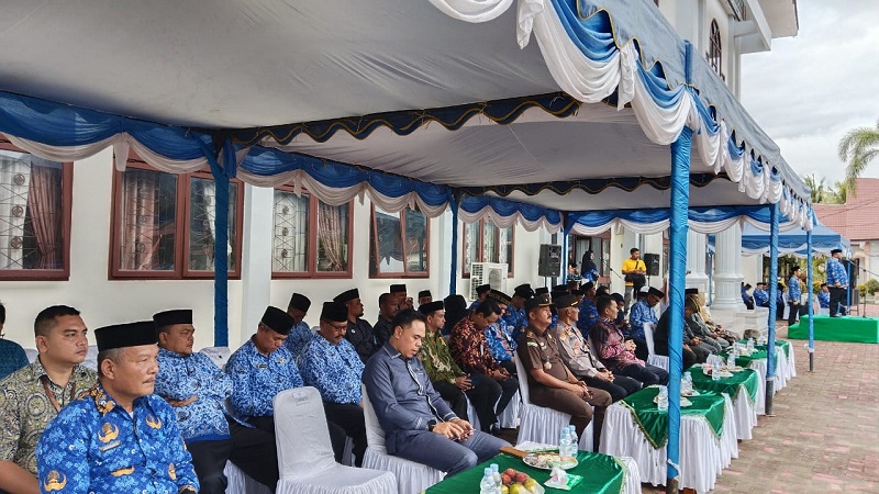 Sambutan Penasehat Nasional Korpri pada acara peringatan HUT ke-52 Korpri Tahun 2023 yang dibacakan pembina upacara Plt Sekda Yusrizal menyampaikan, Korpri kembali memperingati ulang tahun yang ke-52. Untuk itu saya, atas nama dewan pengurus Korpri nasional dan juga pribadi