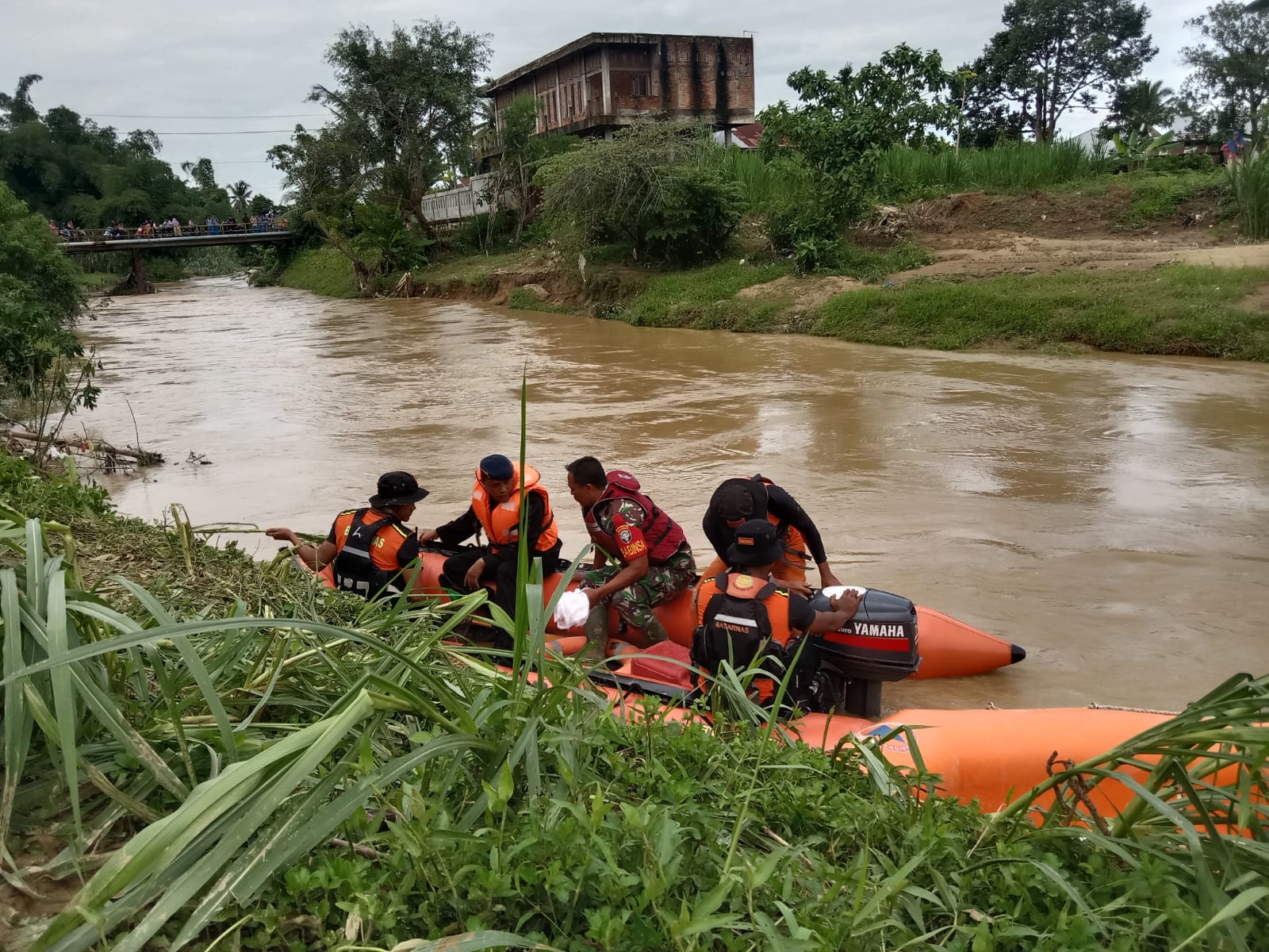 Namun, melihat kondisi arus sungai yang masih sangat deras karena sungai sedang banjir, korban belum juga ditemukan.