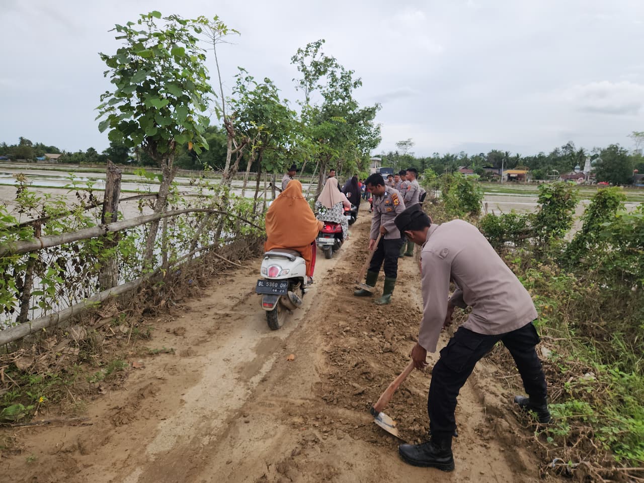 SIGLI (Waspada.id): Sebanyak 42 personel Polres Pidie dikerahkan membersihkan akses jalan penghubung Gampong Puuk menuju Gampong Tanjung, Kecamatan Kembang Tanjung, Kabupaten Pidie, yang tertutup material sisa banjir. Mereka bekerja bergantian sejak pagi demi membuka kembali jalur utama aktivitas warga, Senin (15/12).