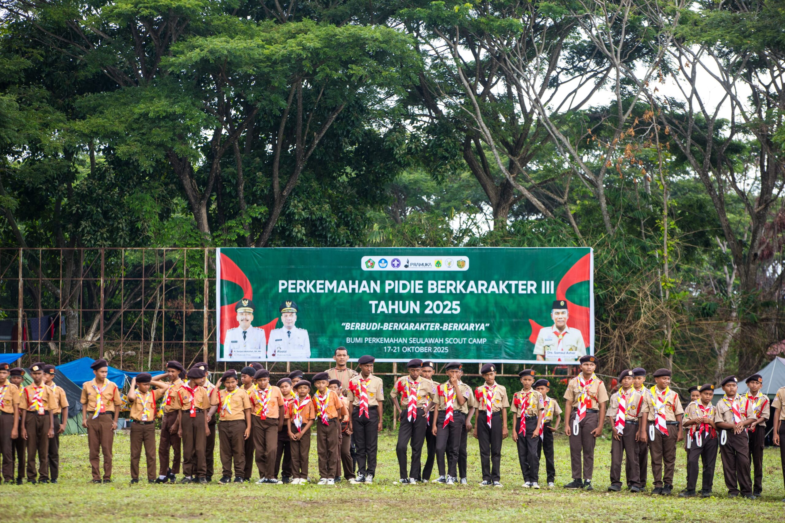 Puluhan tenda berdiri rapi, di antara suara peluit dan tawa riang para peserta pramuka. Inilah awal dari Perkemahan Pidie Berkarakter III, sebuah ajang pembinaan generasi muda yang sarat makna.