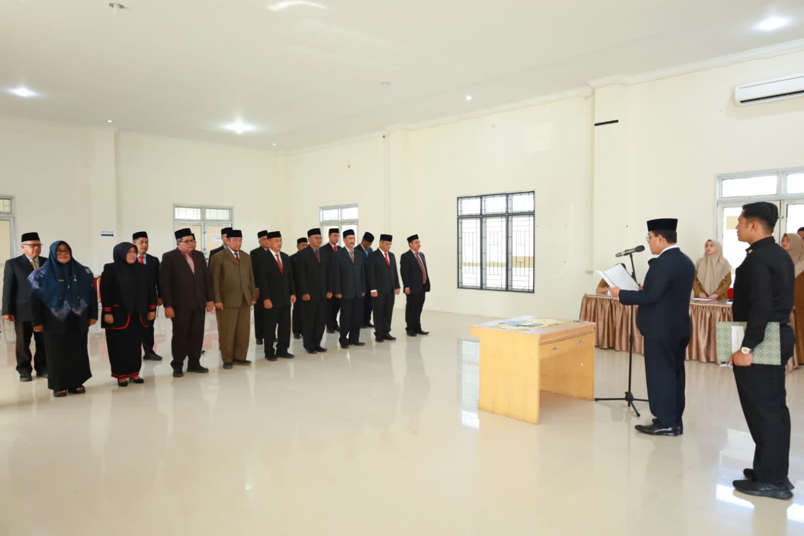 ACEH BARAT (Waspada): Penjabat Bupati Aceh Barat Drs Mahdi Efendi, melantik dan mengambil sumpah jabatan ke 17 ASN Jabatan Pimpinan Tinggi Pratama atau eselon 2 di lingkup Pemerintahan Kabupaten (Pemkab) Aceh Barat, di Aula Gedung C BKPSDM Aceh Barat, Selasa (30/1).