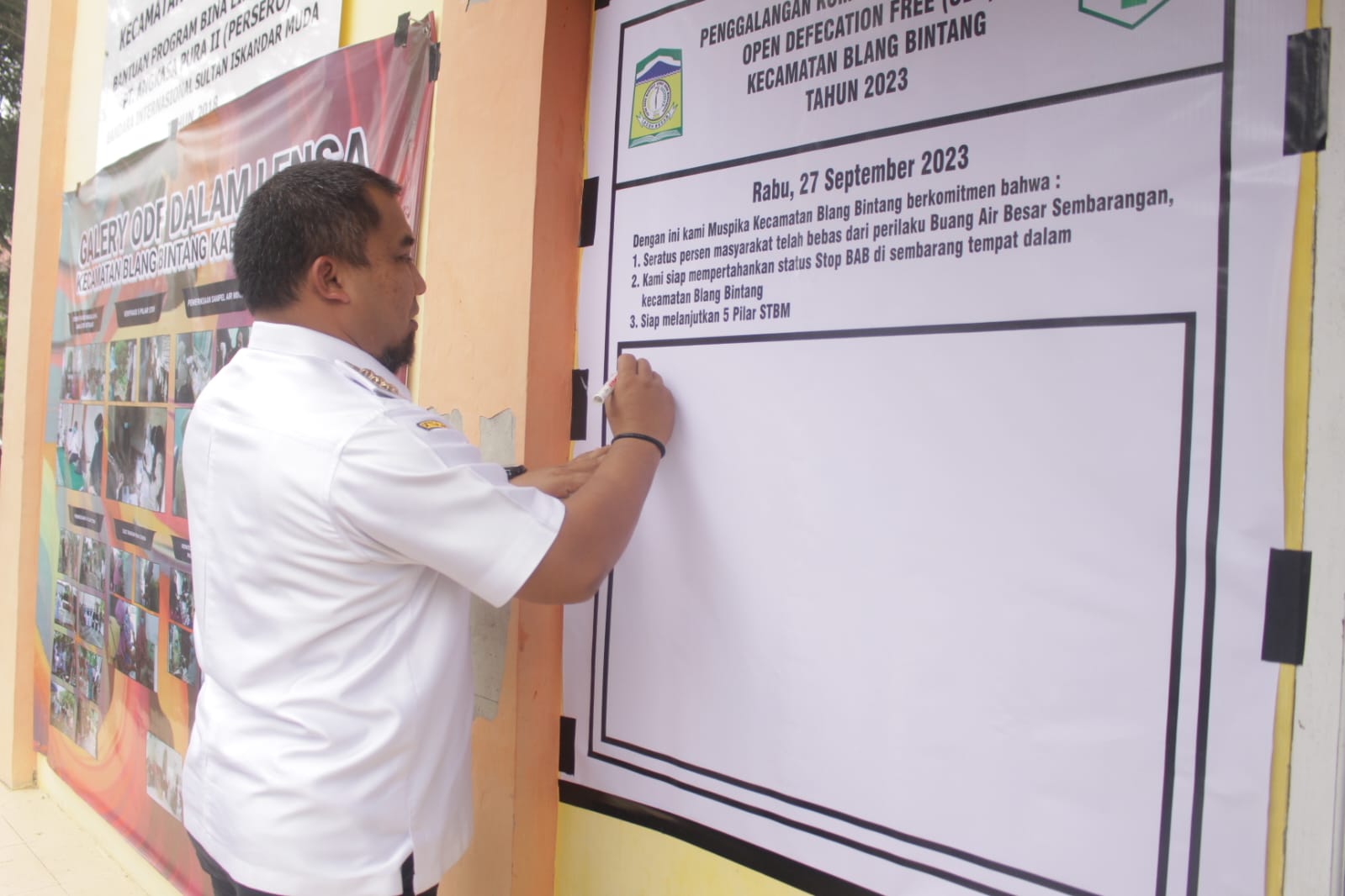 “Blang Bintang ini kecamatan yang kedua mendeklarasikan ODF atau setop BABS, semoga beberapa hari atau minggu kedepan giliran Kecamatan Lhoknga dan Krueng Barona Jaya yang juga akan mendeklarasikan ODF ini, semoga setelahnya kecamatan lain juga memgikutinya, agar Kabupaten Aceh Besar benar-benar terbebas dari ODF atau setop BABS,” tuturnya.