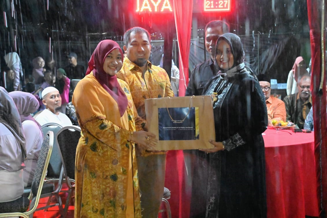KOTA JANTHO (Waspada): Penjabat (Pj) Bupati Muhammad Iswanto bersama Istri yang juga Pj Ketua TP PKK Aceh Besar Cut Rezky Handayani menghadiri lepas sambut Komandan Batalyon Infanteri (Danyonif) Raider 112/Dharma Jaya dari Letkol Inf Muhidin SH kepada Mayor Inf Fiska Bagus Tri Sunaryanto, yang berlangsung di Markas Komando Yonif Raider 112/DJ Mata Ie, Kecamatan Darul Imarah, Kabupaten Aceh Besar, Senin (19/2) malam.