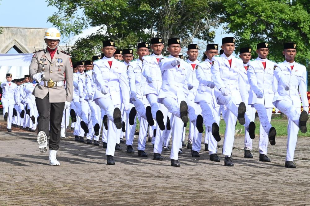 KOTA JANTHO (Waspada): Penjabat (Pj) Bupati Aceh Besar Muhammad Iswanto mengapresiasi 70 anggota Pasukan Pengibar Bendera Pusaka (Paskibraka) Kabupaten Aceh Besar, yang sukses melaksanakan pengibaran hingga penurunan bendera Merah Putih dalam rangka puncak peringatan Hari Ulang Tahun (HUT) ke-79 Kemerdekaan Republik Indonesia (RI).