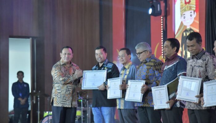 REDELONG (Waspada): Pj. Bupati Bener Meriah Drs. Haili Yoga,M.Si menerima penghargaan sebagai Pemerintah Daerah dengan Pencegahan Korupsi atau Monitoring Center for Prevention (MCP) tertinggi di Provinsi Aceh tahun 2022 dengan skor 94’88 oleh Komisi Pemberantasan Korupsi Republik Indonesia di Balai Meusueraya Aceh (BMA) Kota Banda Aceh, Kamis (9/11).