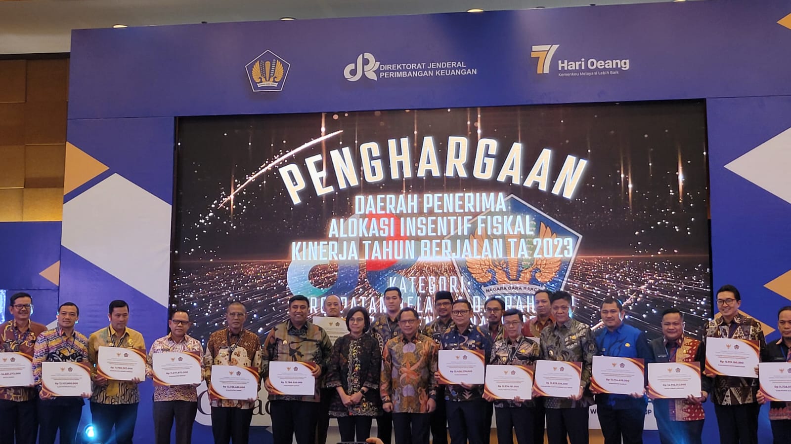 Penyerahan itu bertepatan dengan peringatan Hari Oeang Republik Indonesia (HORI) ke-77, sekaligus pelaksanaan Seminar Internasional Desentralisasi Fiscal dengan tema “ Indonesiam Fiscal Desentralization For The next decades” yang diselenggarakan juga oleh Kementerian Keuangan RI itu.