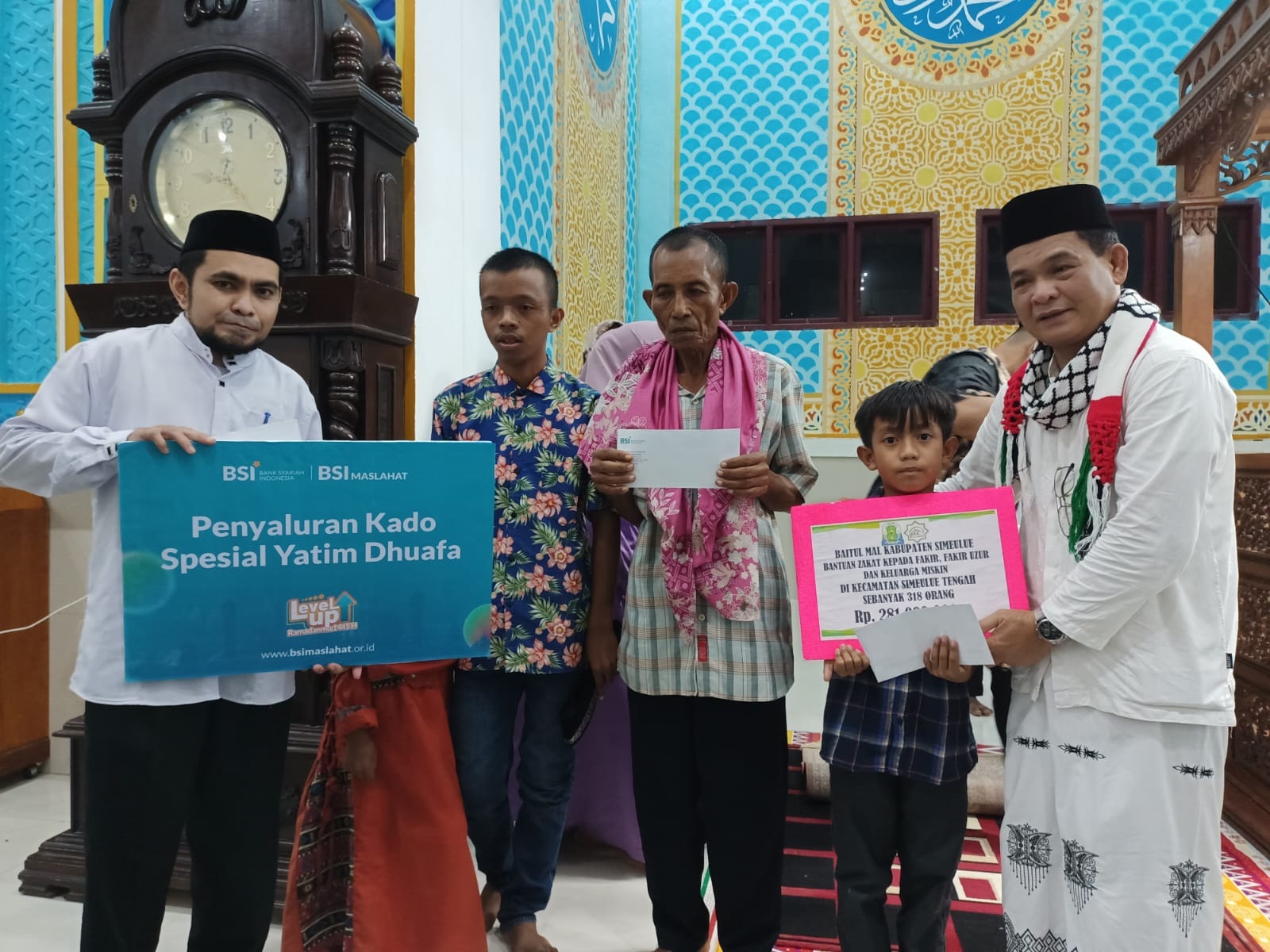 SIMEULUE (Waspada): Dalam rangka menggembirakan hati kaum yatim duafah dan para fakir miskin dalam rangka menghadapi Hari Raya Idulfitri, Penjabat Bupati Simeulue, Ahmadlyah, SH turun tangan langsung menyalurkan bantuan zakat untuk di Kecamatan Simeulue Tengah (red-Simteng) pada Selasa (2/4) bakda tarawih di Masjid Besar Babussalam, di Ibu Kota Kecamatan setempat.