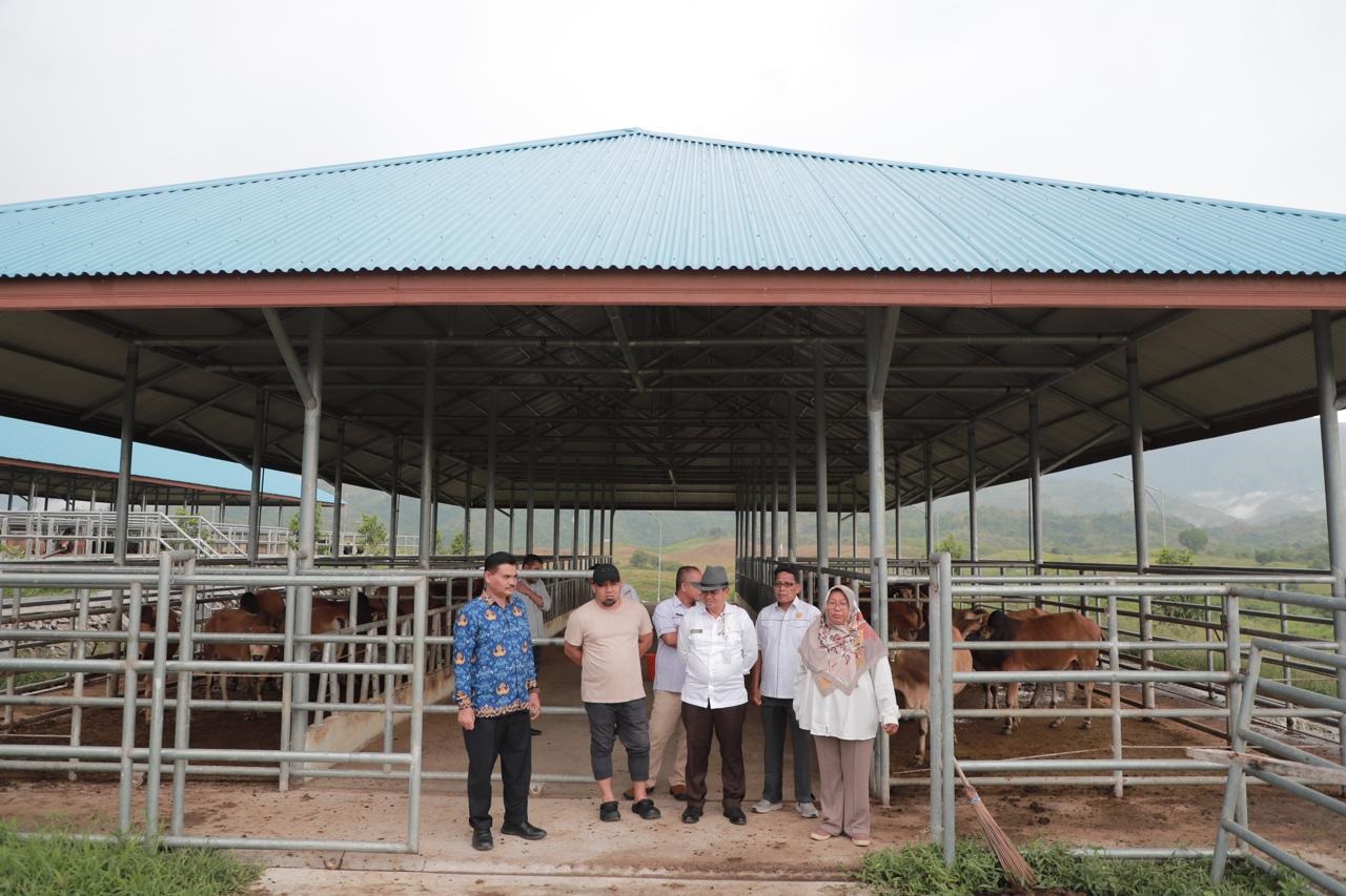 Pj Bupati Iswanto bersama Kepala Dinas Pertanian Aceh Besar Jakfar, dipandu Kepala Balai BPTU-HTP Indrapri Ir Yanhendri MSi meninjau langsung lokasi ternak sapi Aceh yang dipelihara di BPTU-HPT Indrapuri tersebut.