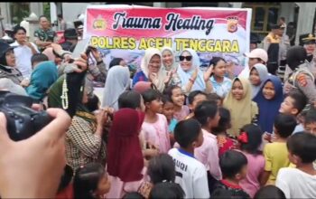 KUTACANE (Waspada): Pj Ketua TP PKK Kabupaten Aceh Tenggara Ny. Fitriani Taufik. S. Sos. M.Si bersama Kadis Sosial Bahagia Wati menyerahkan bantuan kepada korban pasca banjir dan Lansia (lanjut usia) yang rentan di tiga desa yakni,