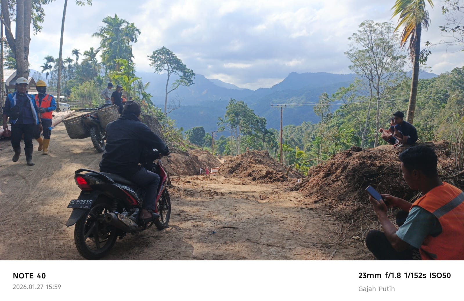TAKENGON (Waspada.id): Di tengah kondisi jalan yang rusak parah akibat bencana alam pada 26 November 2025 lalu, PT PLN (Persero) mulai melakukan pemasangan tiang dan kabel listrik di wilayah Jalur Meriah Jaya arah menuju Kampung Bergang yang terdampak.