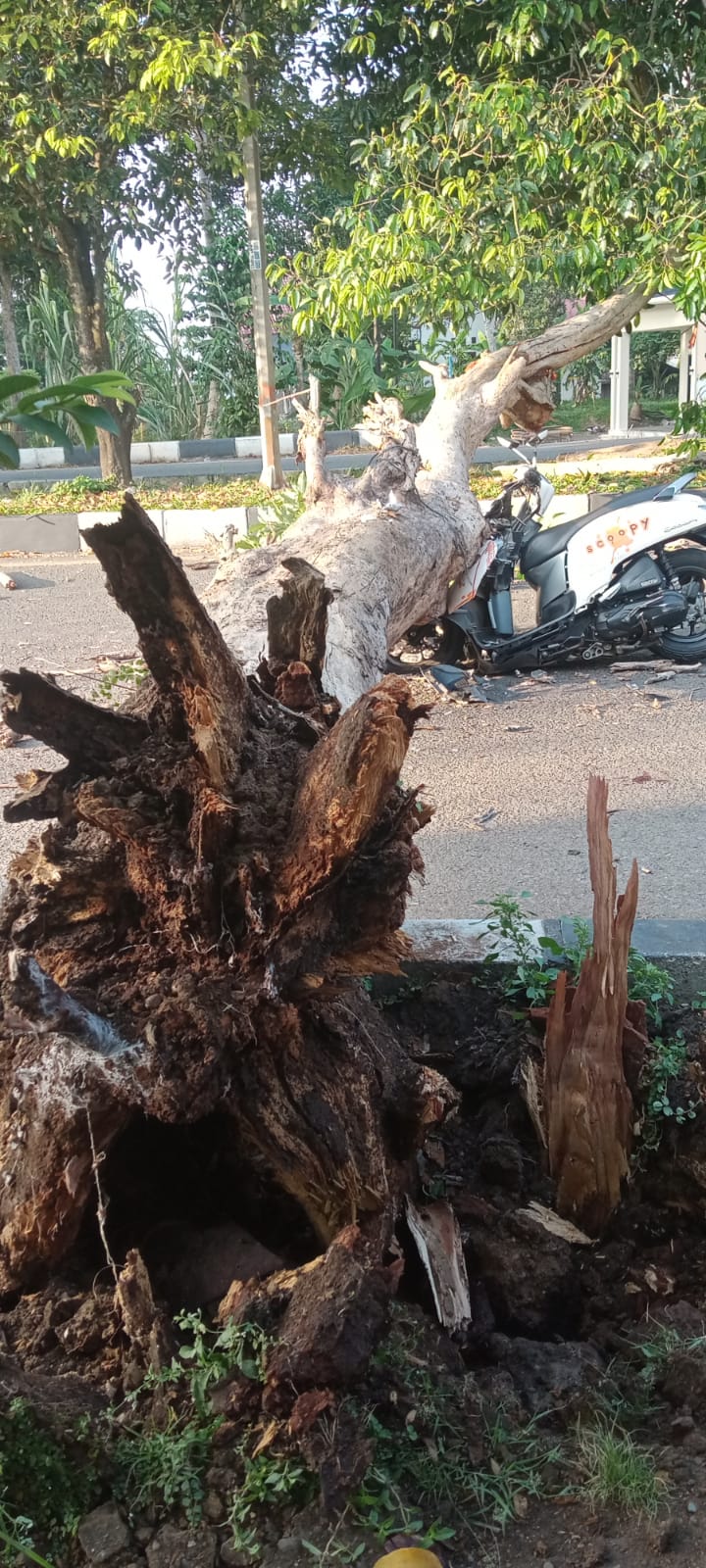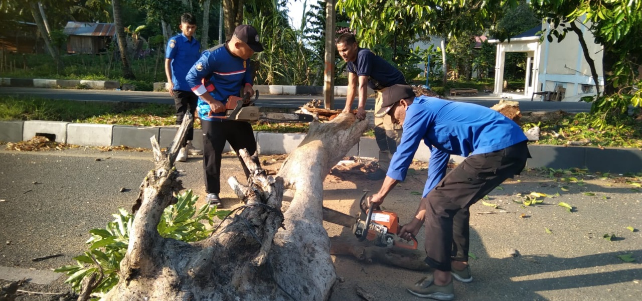 Petugas BPBD mengerahkan enam personel dan peralatan untuk melakukan penanganan dan pembersihan pohon tumbang. “Untuk penyebab kejadian, pohon tersebut sudah mati dan akarnya sudah lapuk hingga tumbang,” terang Ridwan Jamil.