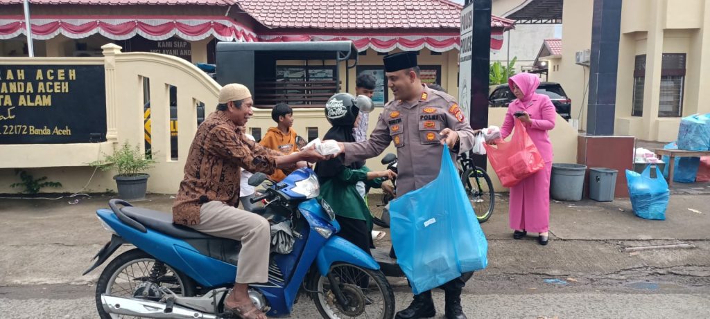 Kapolresta Banda Aceh, Kombes Pol Fahmi Irwan Ramli melalui Kapolsek Kuta Alam, AKP Suriya mengatakan, berbagi sedekah lewat Ramadhan Takjil serta dampak positifnya bagi masyarakat, Sabtu (8/3).