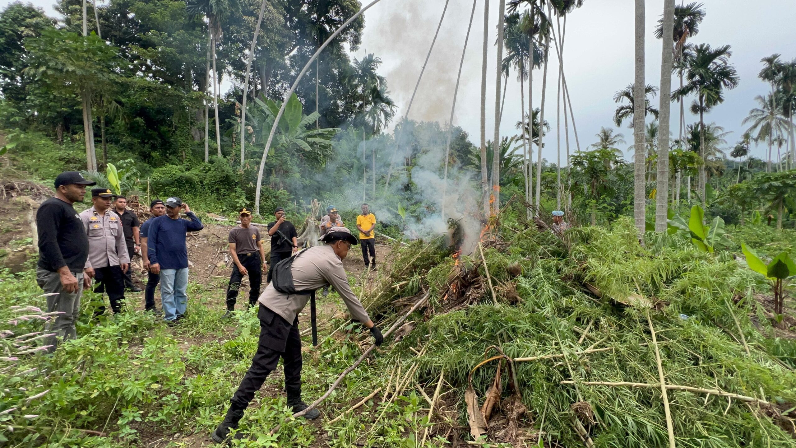 Sehari setelah penangkapan, Kamis (9/10/2025), Polres Bireuen melanjutkan operasi dengan memusnahkan ladang ganja seluas dua hektare di desa yang sama.