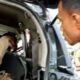 FOTO : Kapolres Langsa, AKBP Muhammadun, S.H paket sembako kepada seorang kakek yang melintas di Lapangan Merdeka Langsa, Jumat (31/3) sore. Waspada/dede