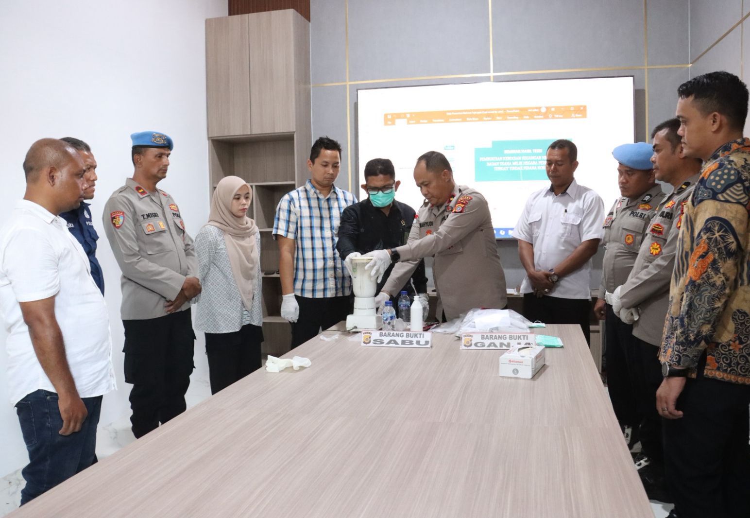 Proses pemusnahan dilakukan dengan membakar ganja, sementara sabu dimusnahkan dengan cara dilarutkan menggunakan cairan alkohol.