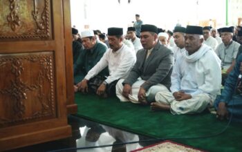 SIGLI (Waspada): Wakapolsek Simpang Tiga Ipda Adnan, mendengar aspirasi masyarakat melalui program ‘Jumat Curhat’ di Balai Gampong Pulo Tu, Jumat (14/4).