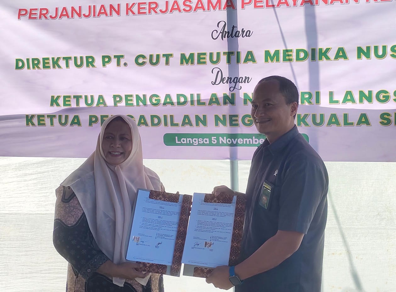 “Kerja sama ini meliputi berbagai layanan kesehatan, mulai dari pemeriksaan medis, layanan laboratorium, konsultasi kesehatan, hingga tindak lanjut penanganan medis sesuai kebutuhan, serta memfasilitasi pelayanan kesehatan dan proses Medical Check Up (MCU) bagi para hakim yang bertugas di Pengadilan Negeri Langsa dan Pengadilan Negeri Aceh Tamiang,” bebernya.