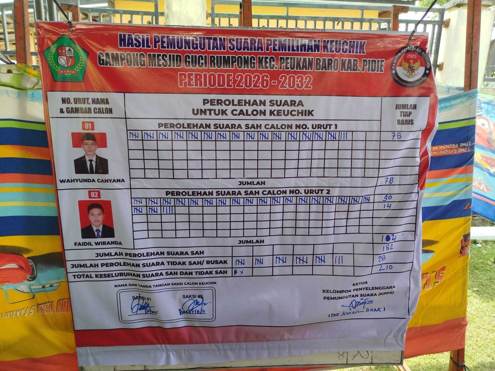 Pemilihan keuchik yang digelar Sabtu, 8 Februari 2026, menjadi arena pembuktian. Incumbent diuji ulang, penantang diberi ruang. Hasilnya tidak abu-abu.