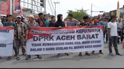 “Kami ketua dan wakil sudah sepakat begitu juga dengan anggota DPRK yang lain nya, agar mengusulkan putra daerah untuk Pj Bupati Aceh Barat, dan tidak satupun yang mengusul Mahdi Efendi,” akunya di hadapan massa.
