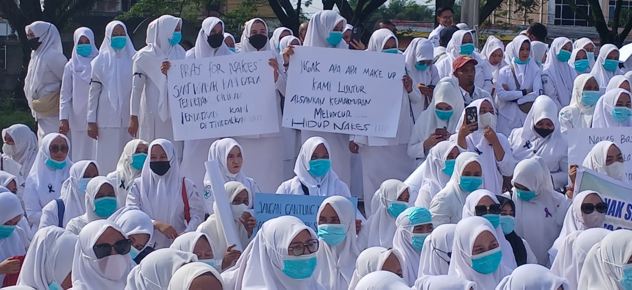 Dalam aksi damai ini, para nakes menuntut untuk diangkat sebagai Pegawai Pemerintah dengan Perjanjian Kerja (PPPK).