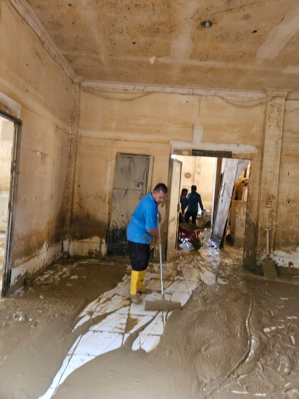 Dengan peralatan yang dibawa dari Banda Aceh, relawan ASN tampak berjibaku membersihkan lumpur sisa banjir bandang yang melanda wilayah tersebut beberapa waktu lalu. Banjir menyebabkan air menggenangi kantor Dinkes Aceh Tamiang hingga hampir menenggelamkan satu lantai gedung, sehingga aktivitas pelayanan sempat terganggu.