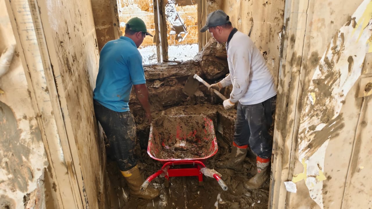 Pada Senin (29/12), para relawan ini bergotong royong membersihkan genangan lumpur yang masih memenuhi seluruh ruangan Kantor Dinas Kesehatan Kabupaten Aceh Tamiang. Kegiatan gotong royong direncanakan juga akan dilanjutkan pada Selasa (30/12) hingga tuntas.