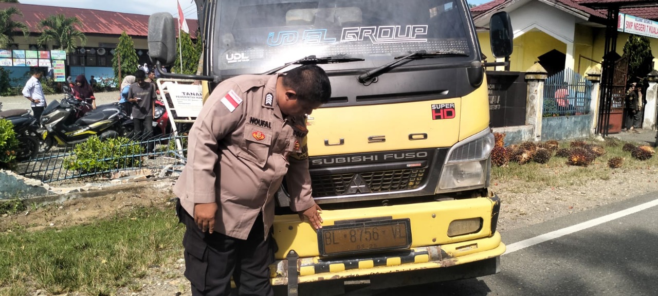 Kecelakaan tersebut melibatkan satu unit mobil Colt Canter bak kayu dengan nopol BL 8756 VL yang mengangkut sekitar 9 ton kelapa sawit. Kendaraan tersebut diketahui bergerak dari arah Meulaboh menuju Tapak Tuan dengan tujuan ke PT SPS 2 di Kecamatan Darul Makmur.