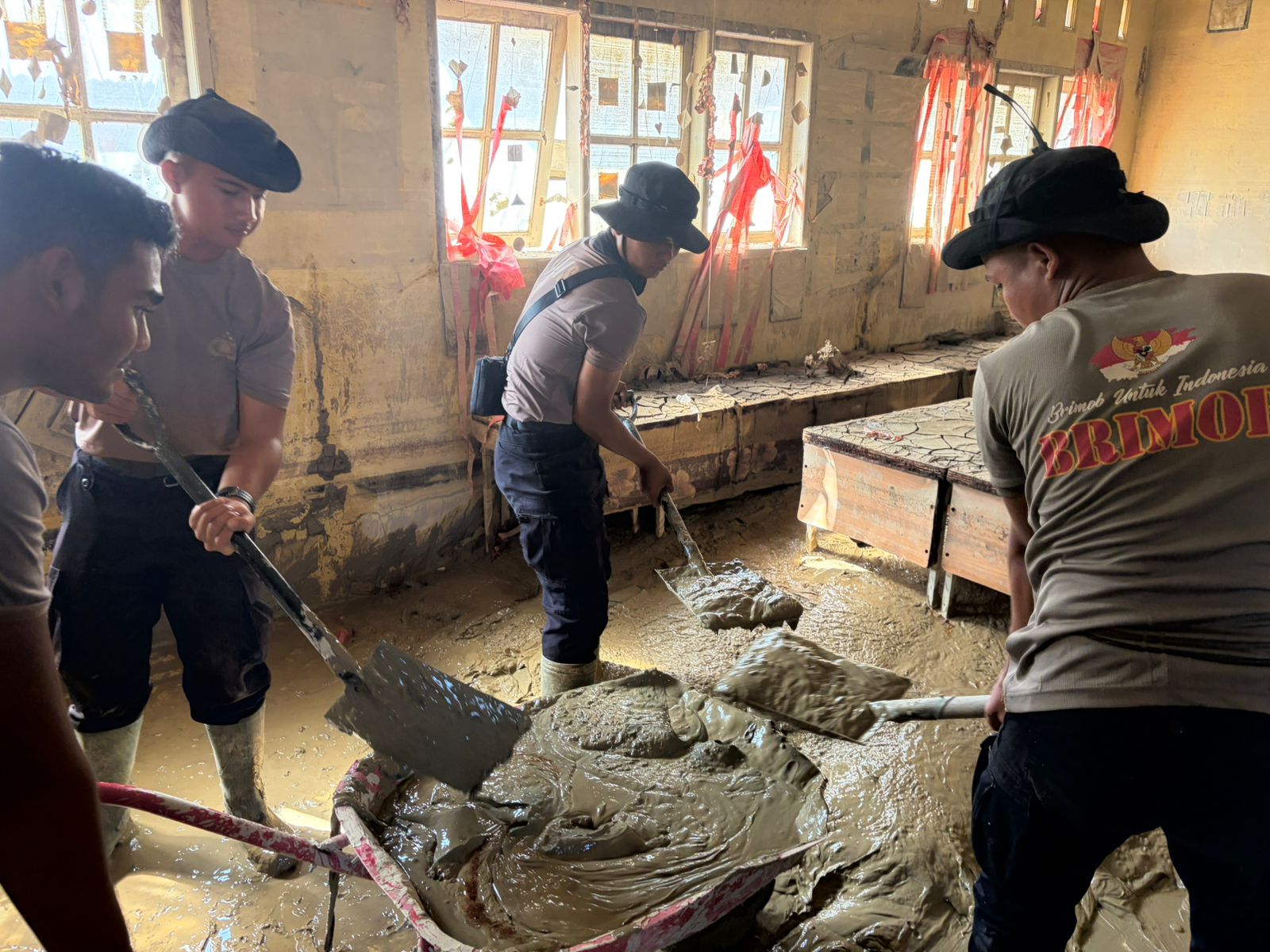 Muzakir juga menambahkan, tidak sampai di situ saja, Brimob terus melakukan pembersihan rumah-rumah rumah warga yang tertimpa bencana banjir dan quick respon siaga di kawasan bencana dan menjadi salah satu sarana bakti Brimob pada masyarakat.