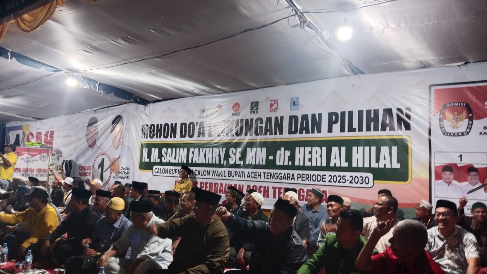 Didampingi istri masing-masing, Salim Fakhry -Heri Al Hilal calon Bupati dan Wakil Bupati Aceh Tenggara mengucapkan ribuan terima kasih atas kehadiran dan antusias pendukungnya. “Begitu ramainya yang hadir malam ini jika kami diberi kepercayaan menjadi bupati dan wakil bupati periode 2025-2030 mendatang, insya Allah kami akan buktikan untuk memperbaiki Aceh Tenggara menuju yang lebih baik, kami tidak bisa berjanji-janji, bukti nyata itu yang perlu,” pungkasnya.