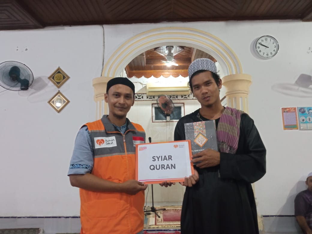SABANG (Waspada): Fasilitator Rumah Zakat, T. Hilnanda melaksanakan penyaluran Paket Syiar Quran kepada para santri yang sedang aktif mengikuti kegiatan Ramadan yaitu pengajian Al Quran pada bulan suci Ramadan di Meunasah Al Furqan Gampong Ie Meulee Kecamatan Sukajaya Kota Sabang Provinsi Aceh.
